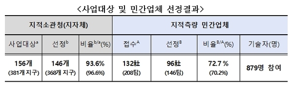 민간 업체 선정 과정에서는 높은 경쟁률이 관찰됐다. 18일간의 공개 모집 기간 동안 132개 업체가 참여해 전국 평균 5:1의 경쟁률을 기록했다. 결과적으로 156개 대상 지자체 중 146개에서 민간 업체가 선정됐다.