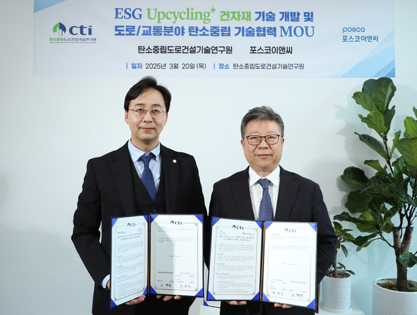 이번 업무협약을 통해 포스코이앤씨는 현장에서 발생하는 건설폐기물의 현황과 업사이클링 건자재 기술 개발을 위한 연구결과를 공유하고 도로 구조물 및 도로 배수층을 포장하는 기술 등을 공동 연구해 도로 구조물 분야의 건자재 기술을 추가 개발할 계획이다.