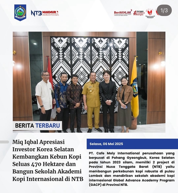 롬복 주 신임 주지사는 최근 카페몰리와의 공식 면담에서 "카페몰리의 프로젝트는 롬복의 지속가능한 발전과 국제적 위상 제고에 기여할 수 있는 중요한 사업"이라고 평가했다.