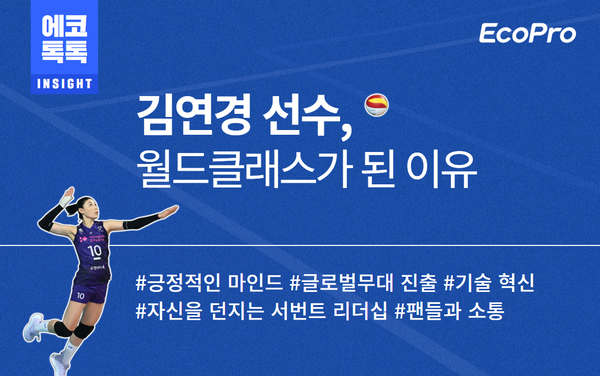 에코프로는 ‘김연경 선수, 월드클래스가 된 이유’라는 제목의 컨텐츠를 통해 김연경 선수의 배구 인생 20년에서 배우는 교훈을 △긍정적인 마인드, △글로벌무대 진출,