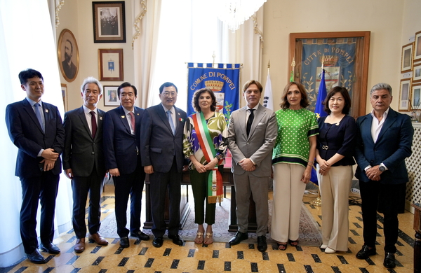 시는 13일(현지 시각) 폼페이 시청에서 안드레이아 에스포지토 시장대행과 만나 자매결연 40주년을 기념하는 교류협정에 서명했다.