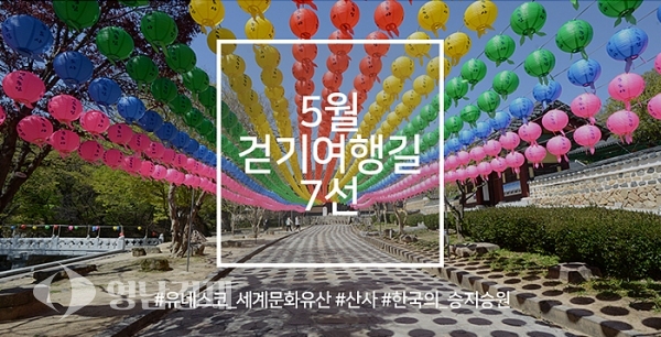 따뜻한 5월, 세계적 가치를 인정받은 국내 산사로 마음을 정화하는 여행길을 떠나보는 건 어떨까? 공사는 이달의 걷기 좋은 여행길로 유네스코 세계문화유산 ‘산사, 한국의 승지승원’으로 등재된 국내 사찰 7곳을 선정하였다. 이달의 추천길로 선정된 길은 ‘두루누비(durunubi.kr)’에서 자세한 정보를 확인할 수 있다.