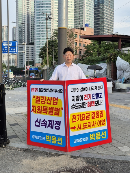 박용선 경북도의원은 1일 오전, 용산 대통령실 앞에서 산업용 전기요금 반값 인하를 강력히 촉구하는 1인 시위에 나섰다.