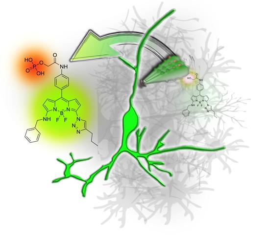 이 화학반응은 '인산화(Phosphorylation)'라고 불리는 과정으로, 단백질이나 분자에 인산기가 결합하는 현상이다. NeuO는 인산화 과정을 거치면서 형광 강도가 증가하고, 동시에 세포 외부로 유출되지 않고 신경세포 내부에 머물게 된다.