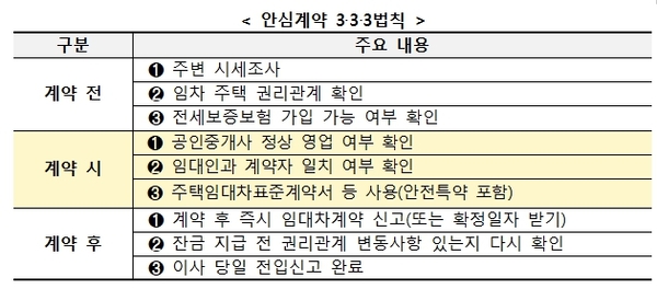 '안심계약 333 법칙' 제시, 전세 계약 전 과정 피해 방지책 총체적으로 망라하다