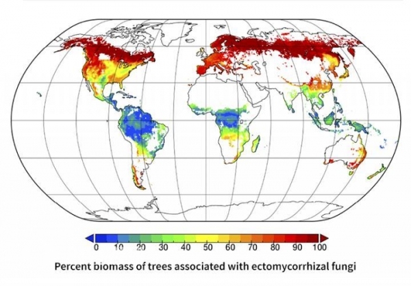 16일 미국 스탠퍼드대학과 BBC뉴스 등 외신에 따르면 스위스 취리히 연방 공과대학(ETH 취리히)의 생태학자 토마스 크라우더 교수가 이끄는 연구팀은 세계 70여개국 110만여개 숲에 서식하는 2만8천여종의 나무를 조사한 자료를 토대로 세계 수목과 균근 균의 공생 지도를 만들었다.