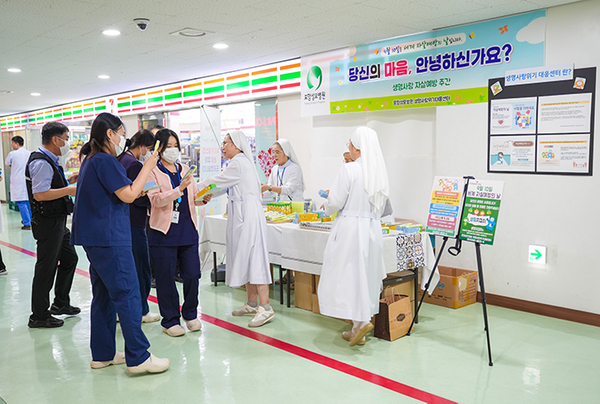 첫날인 10일에는 직원식당 앞에서 자살예방 관련 리플렛과 기념품을 배부하며 센터의 주요 활동을 소개했다. 병원 관계자는 "직원들이 자연스럽게 자살예방에 대해 관심을 갖고 생각해볼 수 있는 기회를 제공했다"고 설명했다.