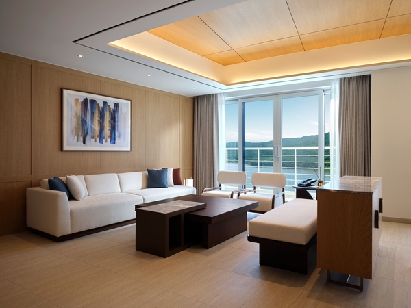 호텔 측에 따르면 PRS 객실 내부는 보문호수를 파노라믹 뷰로 감상할 수 있는 침실을 비롯해 욕실, 다이닝룸, 거실, 집무실 등으로 구성됐으며, 인테리어는 신라 왕실의 별궁인 ‘임해전’에서 영감을 받아 전통미와 현재적 감각의 조화를 실현했다고 한다.