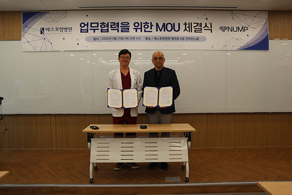 협약식은 이날 오후 에스포항병원 행정동 6층 콘퍼런스룸에서 김문철 대표병원장과 이주석 넘프 대표이사 등이 참석한 가운데 진행됐다. 강원 원주에 본사를 둔 넘프는 AI와 의료·헬스케어 분야를 융합한 솔루션과 시스템 소프트웨어를 개발하는 기업이다.