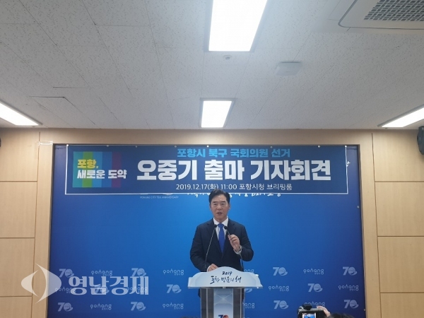 오 예비후보는 17일 포항시청에서 기자회견을 열고 “필사즉생(必死卽生)의 각오로 내년 총선에 임해 그동안 포항시민에게 받은 사랑을 반드시 당선으로 보답하겠다”고 밝혔다.
