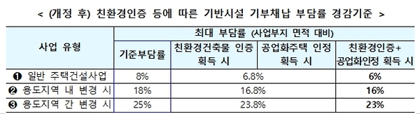 이에 정부는 기준 부담률(8%)에 17%포인트를 추가해 최대 25%까지만 부과할 수 있도록 제한했다. 기존 ‘용도지역 내 변경’의 경우 최대 18%까지만 허용됐지만, 이번 조치로 ‘간 변경’의 상한도 명확히 설정되면서 지자체 재량에 따른 과도한 부담이 줄어들 전망이다.