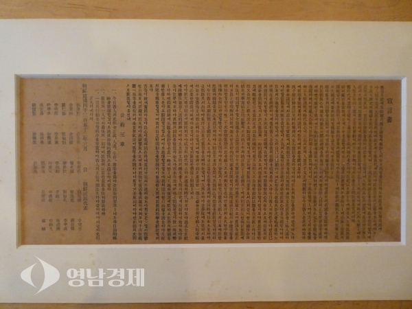 이 선언서는 사토 마사오 씨의 조부 사토 요시헤이(佐藤芳兵)가 1919년 3월 1일 아침에 수득해 보관하다가 1929년 일본으로 귀국할 때에 갖고 간 것이다.