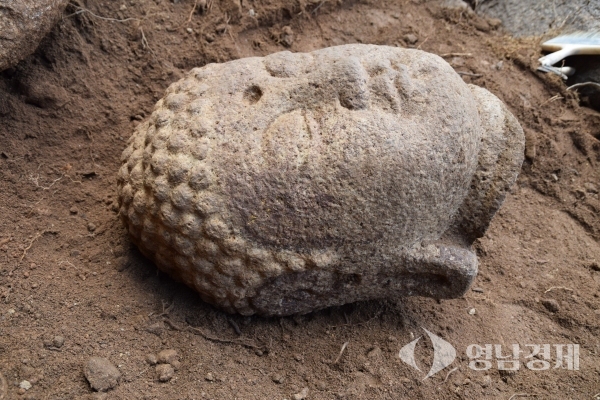 일제강점기 때 확인한 석조여래좌상의 머리로 추정