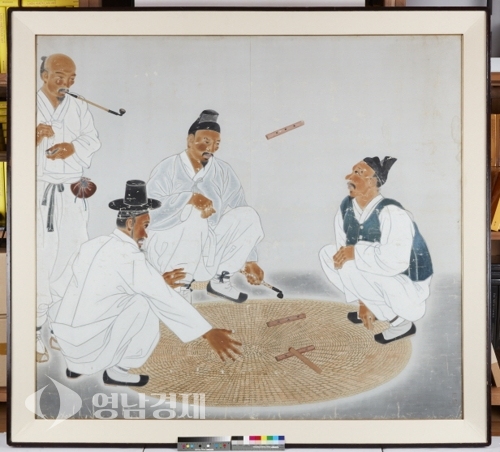 29일 서울 국립현대미술관(MMCA) 덕수궁에 걸린 화가 백윤문(1906∼1979)의 그림 '건곤일척(乾坤一擲)'이다. 그는 1939년 조선미술전람회(선전)에 이 작품을 냈다. 운명을 건 승부를 차분하지만 강렬하게 그려낸 작업은 특선을 차지했다.