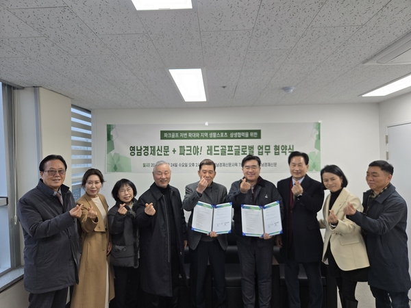영남경제신문과 ㈜레드골프글로벌(브랜드명 파크야)는 생활스포츠 및 파크골프 활성화를 위한 상호협력, 업무 공유체계 구축 목표를 위해 업무제휴협약을 체결했다.